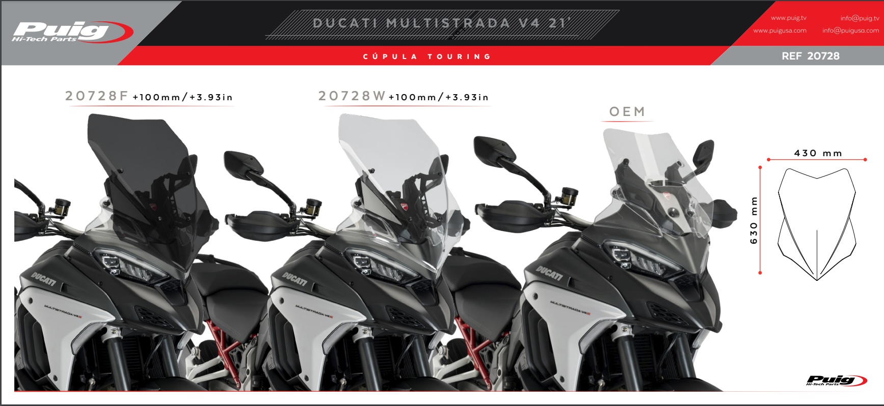 Bolhas Touring, desenvolvidas pela Puig em Barcelona, são projetadas com o objetivo de proteger aerodinamicamente o piloto sem afetar seu campo de visão. Além disso, essas telas se adaptam perfeitamente ao estilo de aventura e à estética dos modelos de trilha, graças à sua ampla gama de cores e tamanhos diferentes.