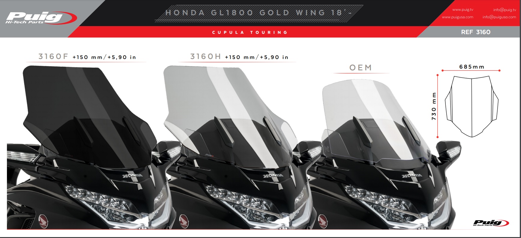 Bolha Touring, desenvolvidas pela Puig em Barcelona, são projetadas com o objetivo de proteger aerodinamicamente o piloto sem afetar seu campo de visão. Além disso, essas bolhas combinam perfeitamente com o estilo de aventura e estética dos modelos de trilha, graças à sua ampla gama de cores e tamanhos diferentes.