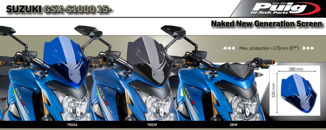 A Puig levou em consideração a diversidade desse estilo de motocicleta e tem um modelo para cada uma das motocicletas mais atuais. Além disso, para que a peça se adapte perfeitamente à linha estética da motocicleta, a Puig tem à sua disposição uma grande variedade de cores da carenabris para escolher.