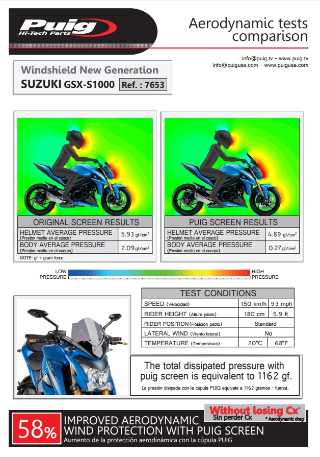 O produto foi testado em túnel de vento, obtendo os melhores resultados, portanto, a Puig fornece este estudo com a peça.