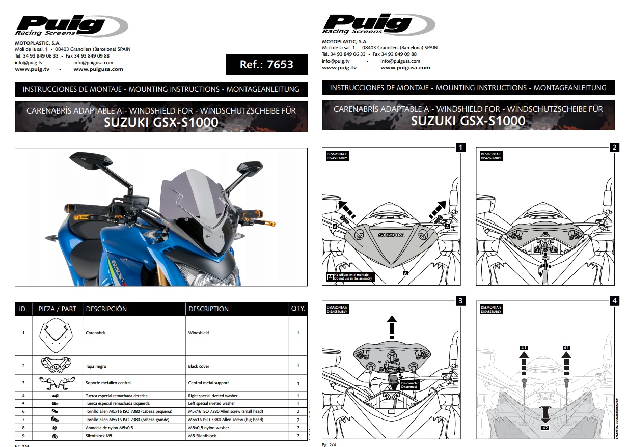 A montagem da peça é uma tarefa fácil e se adapta perfeitamente à máquina. Para facilitar a montagem, Puig acompanha as instruções da carenagem para o acoplamento.